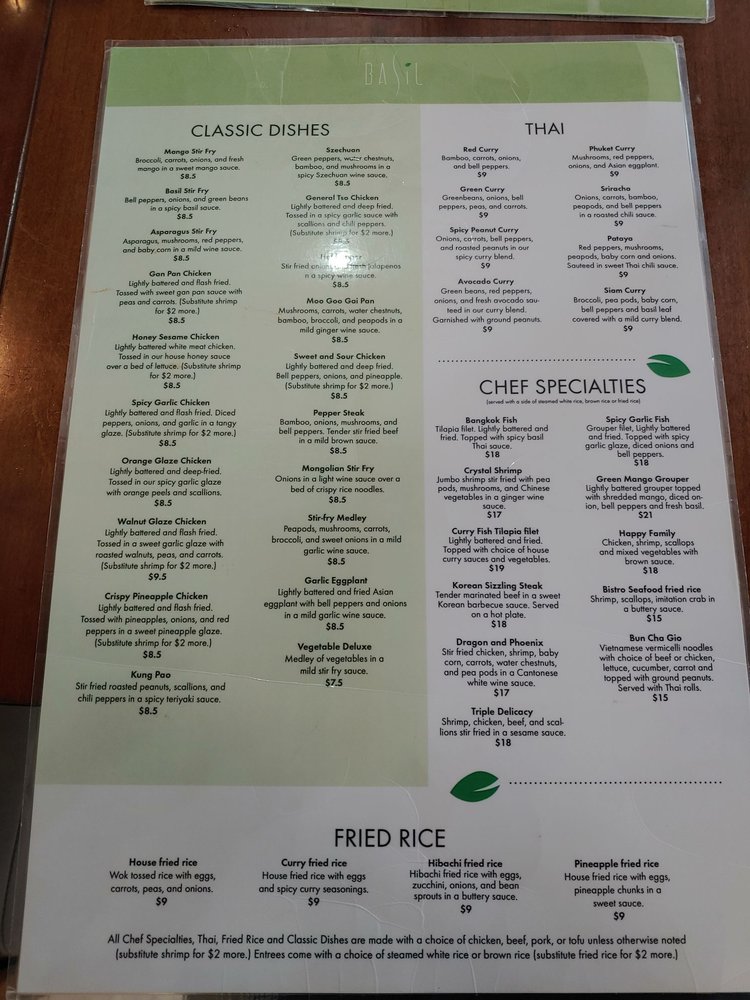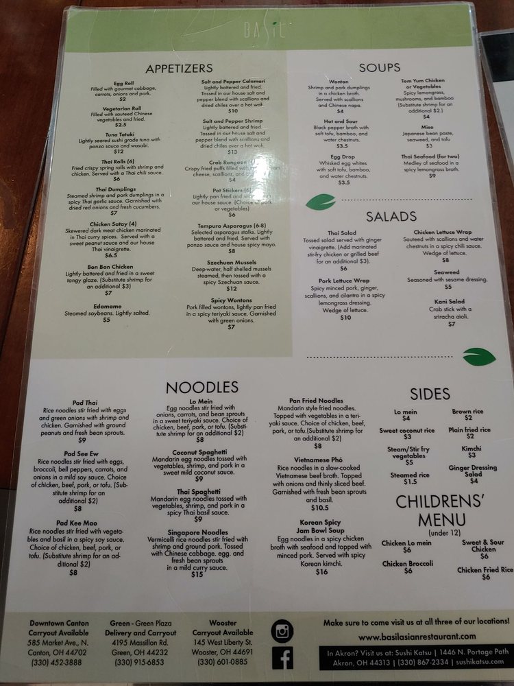 Basil Asian Bistro offers a variety of Asian dishes with a modern and trendy ambiance. Located at 145 W Liberty St in Wooster, OH, this bistro caters to those looking for a unique dining experience. The menu boasts appetizers like Egg Rolls, Tuna Tataki, and Thai Rolls, as well as soups like Wonton and Tom Yum. Salads like Thai Salad and Chicken Lettuce Wraps are also available. Customers rave about the Tom Yum soup, Pad Thai, and salt and pepper calamari. The atmosphere is clean and inviting, with fast and friendly service. Basil Asian Bistro is a great option for those looking for delicious Asian cuisine in a trendy setting.